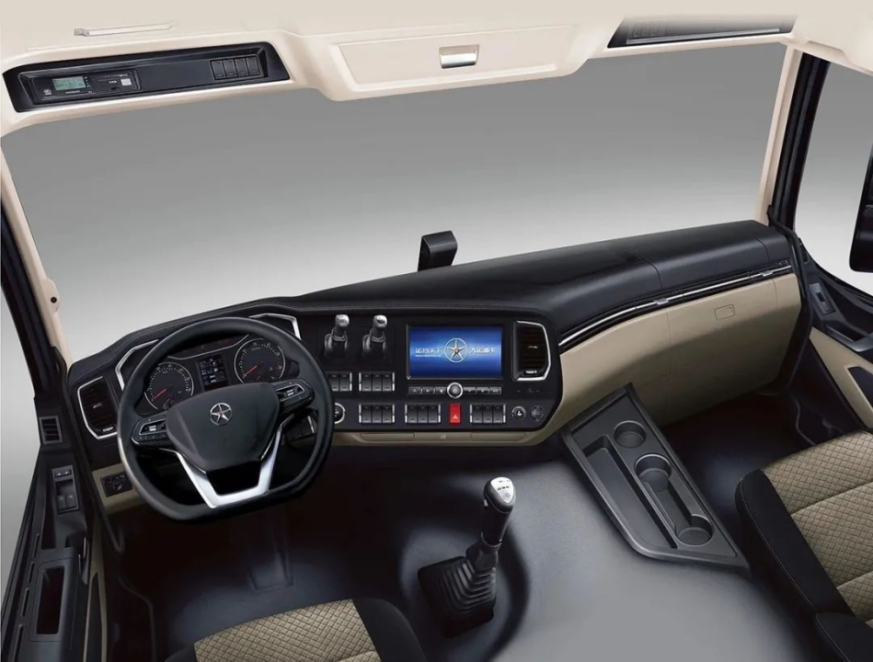 大运新N8E 6*4牵引车内饰采用半包围环岛式设计,配置先进且人性化,所有操作一气呵成,游刃有余;多媒体智能中控屏,蓝牙互联,接打电话,听个音乐,全新感官体验;D型多功能运动方向盘,卡车司机专属,指尖轻松掌控,保证驾乘舒适性和实用性;全新定制气囊座椅,具有速降、通风加热等功能,增加座椅缓冲性和包裹感,帮助卡友保持舒适的驾乘姿势。