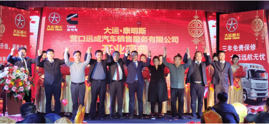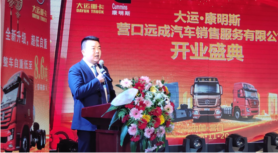2018年11月20日,大运重卡康明斯经销商营口远成盛大开业。成都大运汽车集团有限公司运城分公司副总经理刘卓志、康明斯(中国)投资有限公司重卡业务总经理陆芃及相关领导、行业嘉宾近220余人参加了本次开业盛典,活动取得圆满成功。