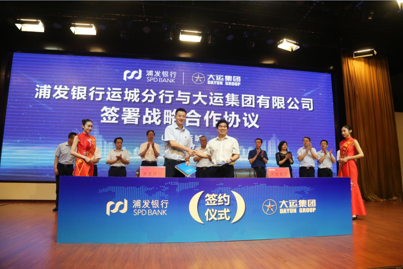 7月16日,大运集团与浦发银行运城分行签订党建共建协议、战略合作协议,并举办5亿元综合授信启动仪式。运城市委常委、常务副市长陈杰;浦发银行太原分行党委书记、行长白海忠;大运集团董事长远勤山,大运集团党委副书记刘向阳;运城市金融办、人行运城中支、运城银监分局、浦发银行运城分行主要负责人出席活动。