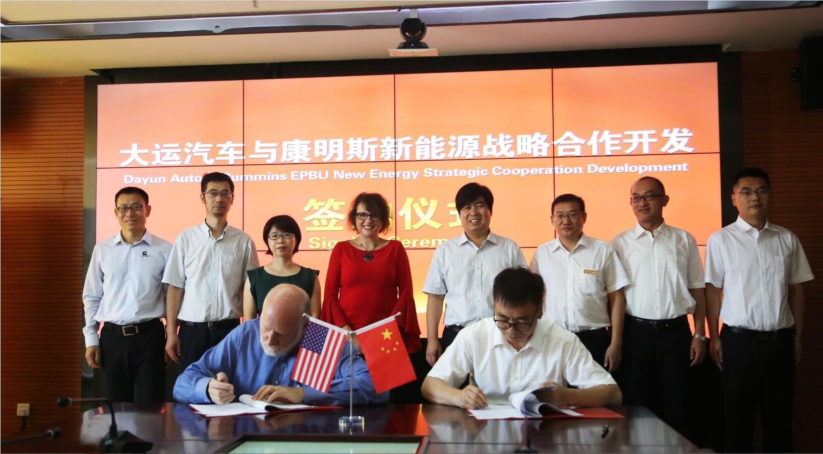 7月19日,大运汽车与康明斯新能源战略合作开发签约仪式在运城隆重举行,大运集团董事长远勤山、康明斯电动动力全球业务领导JulieFurber和技术总监Tom Dollmeyer等领导共同出席签约仪式。