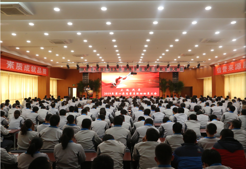 本届质量月活动以“人品成就产品、素质成就品质”为主题,以“质量月”为契机,贯彻大运质量文化,提高员工质量意识,为全面质量管理提升打下坚实基础。