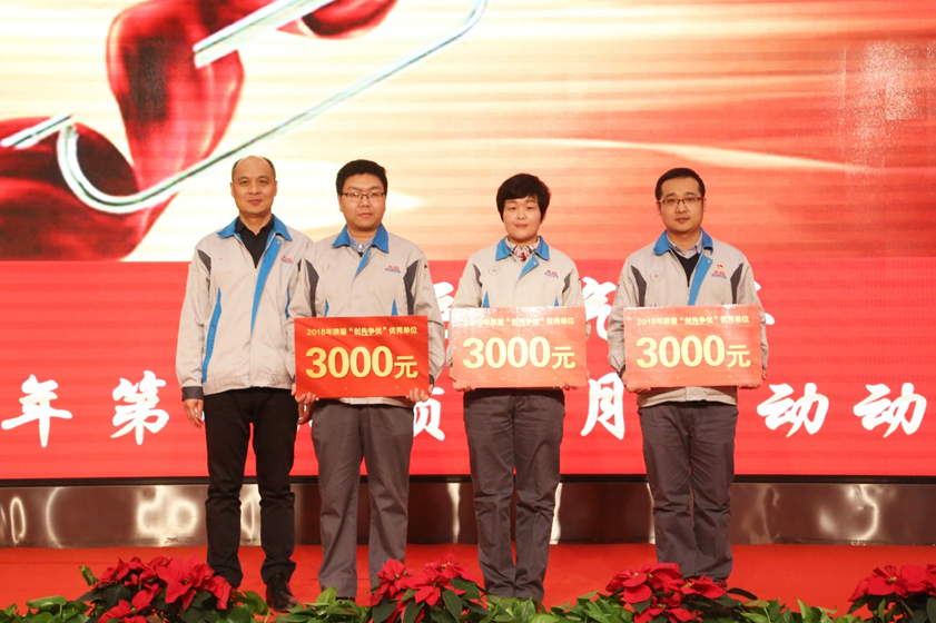 公司总经理陈澔利为2018年度“质量创先争优”优秀单位获奖代表颁奖并合影留念