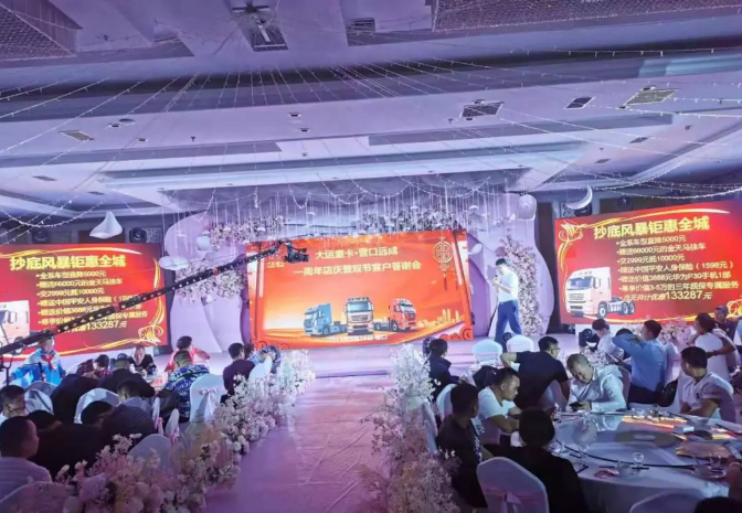 金风送爽、秋色宜人,中秋佳节刚刚过去,祖国七十华诞即将迎来。在这美好时节,大运重卡营口远成商家于2019年9月16日,隆重举行一周年店庆暨双节客户答谢会,活动到场295人,订车多台。康明斯(中国)沈阳分公司和平安租赁负责人到场参会,营口地区物流运输行业老板、司机、广大卡友们同聚一堂,活动在热烈的氛围中展开,并取得圆满成功。