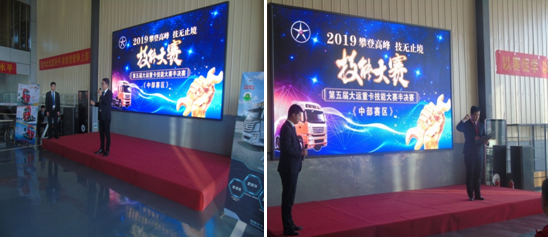 早上8时整,河南大区销售负责人裴晓强、焦作广源汽车销售服务有限公司总经理程小闯、大运重卡服务管理部保修负责人孟宁分别致辞并宣告比赛正式开始。