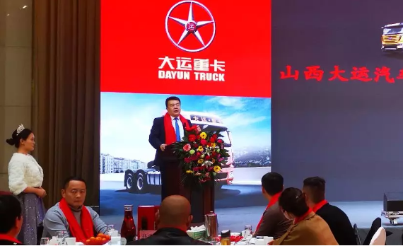随后山西大运销售副总经理刘卓志就大运重卡的发展历程做了详细的介绍,大运作为重卡行业里的一匹黑马,在十年的发展过程中不管在销量、车型等方面都取得了不错的成绩,随着今年全系2.0版本的推出和旗舰V9产品的上市,大运重卡有了更大的竞争力。同时,刘总对大运重卡在临沂取得的成绩给予了肯定,他相信2020年大运重卡在各物流和汽贸公司的支持下会取得更好的成绩,最后他对在座的来宾表达了诚挚的祝福,祝福大家好运连连!大运年年!