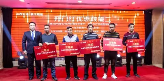 紧接着,浙江鼎运总经理王钦鹏上台发言,他先是回顾了公司过去一年的历程,并表示这一年公司所取得的优异成绩离不开浙江鼎运全体员工的共同努力,也离不开广大客户的信任与支持,更离不开山西大运厂家的大力支持,最后给大家献上了新年的问候和诚挚的祝福。