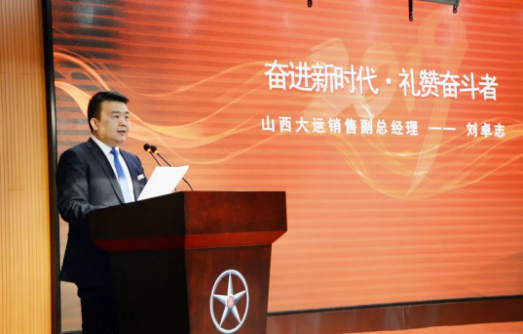 山西大运销售副总经理刘卓志发表了热情洋溢的新春贺词,他为大家讲述了大运公司从小团队到大家庭,十年急速超车的奋斗历程。接下来刘总分别从品牌形象、产品竞争力、市场导向、销售业绩、售后服务、合作商体系、员工发展等多方面与大家分享了大运公司的经营理念以及取得的傲人成绩。最后刘总预祝全体家人,新春快乐,万事如意!大运连连,大运年年!