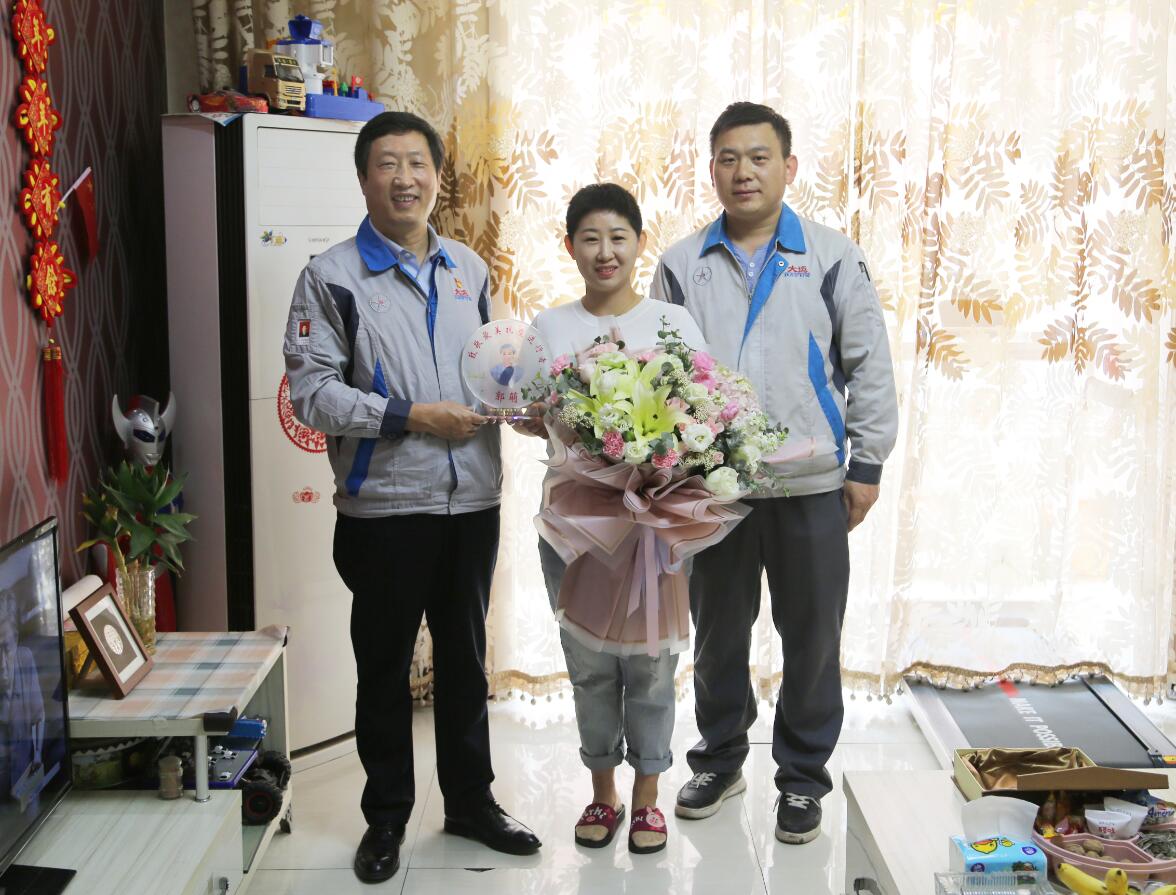 4月27日,大运汽车股份有限公司工会主席孙兆明、涂装一部副经理谢雄一行,到我公司涂装一部党琦勋家中,慰问抗疫一线英雄——深入武汉载誉归来的党奇勋妻子郭萌,并向她赠送纪念奖牌和精心准备的跑步机、微波炉等礼物。