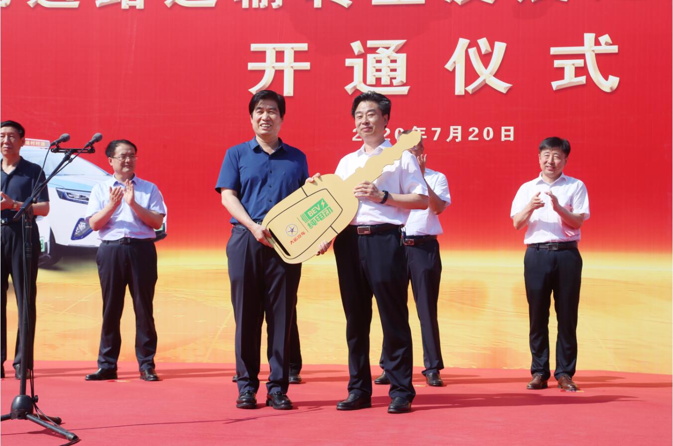 7月20日上午9时整,运城市深化道路运输转型发展定制客运线路开通仪式在大运新能源汽车生产基地隆重举行,仪式由运城市交通运输局党组书记、局长李晋学主持,山西汽运集团运城汽车运输有限公司董事长张欢照、大运汽车股份有限公司董事长远勤山出席仪式并分别致辞,在各级领导及双方员工的见证下,远勤山董事长郑重向张欢照董事长交授车辆钥匙。山西汽运集团总经理段素宏在仪式上作了表态发言。