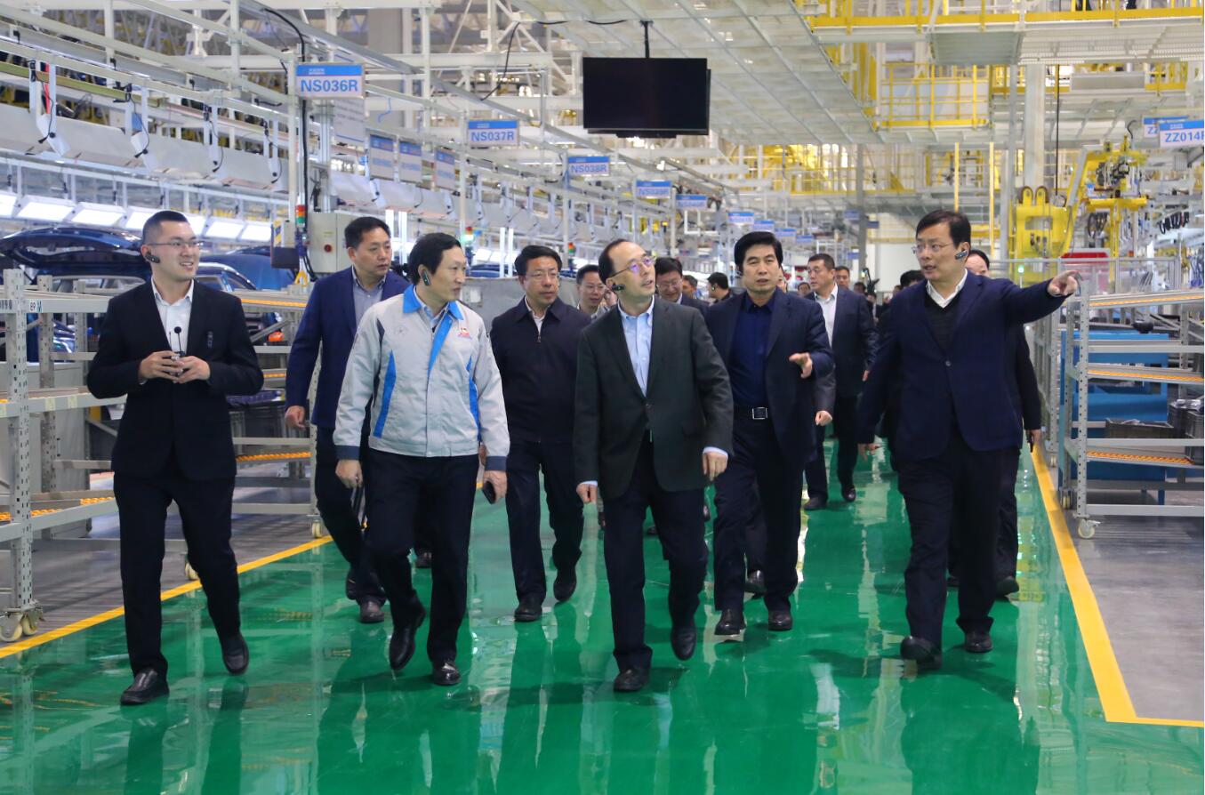 调研过程中,徐佐一行观看了机械伺服压力机高效自动化的作业过程,穿过了机器人林立的自动化焊接车间,见证了大运纯电动乘用车和大运重卡由一块块钢板到诞生的过程。在样车摆放处,前来调研的领导们纷纷试乘试驾了大运纯电动SUV、MPV以及大运最新的V9高端重卡,大家对大运汽车的驾乘体验给出一致好评。