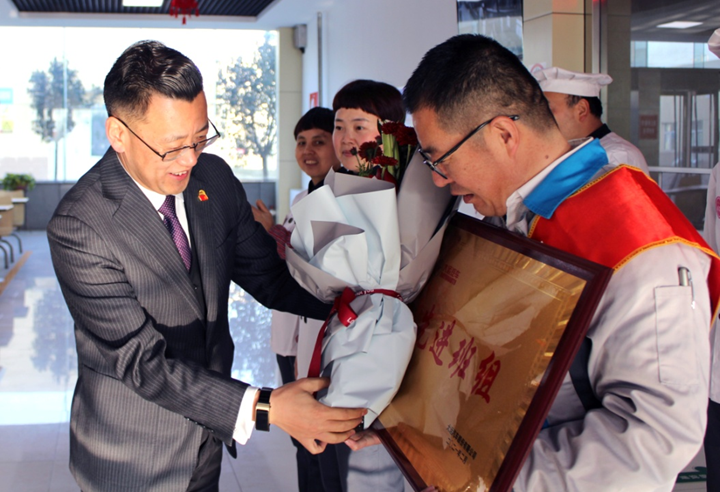 王敬东副总经理为后勤保障部新能源后勤工段颁发先进班组奖