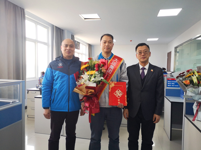 大运九州集团党委副书记、工会主席孙兆明在办公楼区域为获奖人员颁奖
