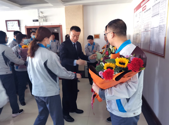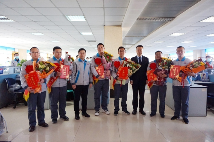 上午8时30分,公司15位高层领导兵分七路分别去往公司各个车间、部门,为4名优秀党务工作者、5名创优先锋、31个先进集体、138名公司级优秀个人颁发奖牌和荣誉证书等,同时也为大家带去新年的祝福。