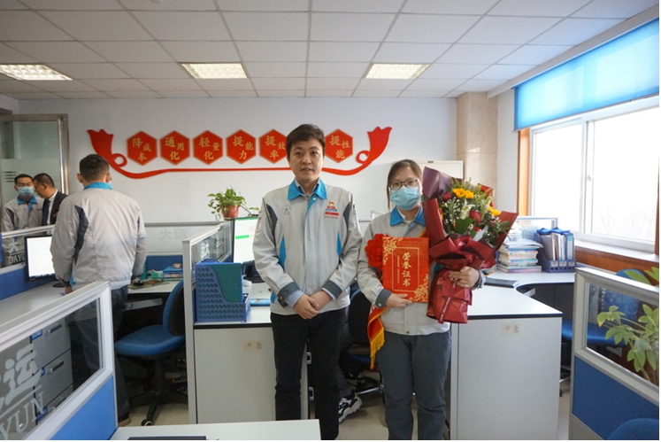 刘宝乾副总经理在办公楼区域为获奖人员颁奖