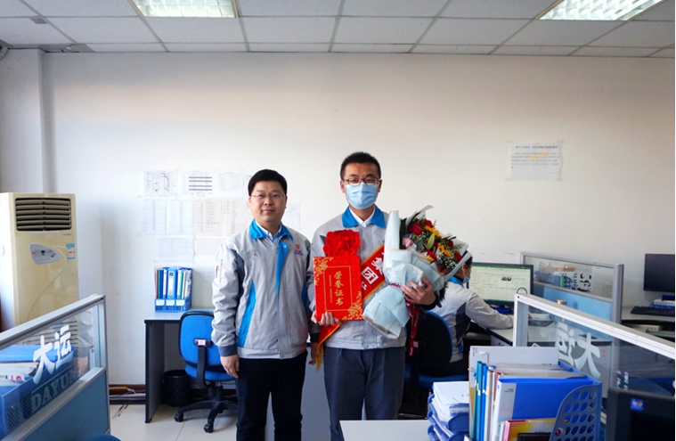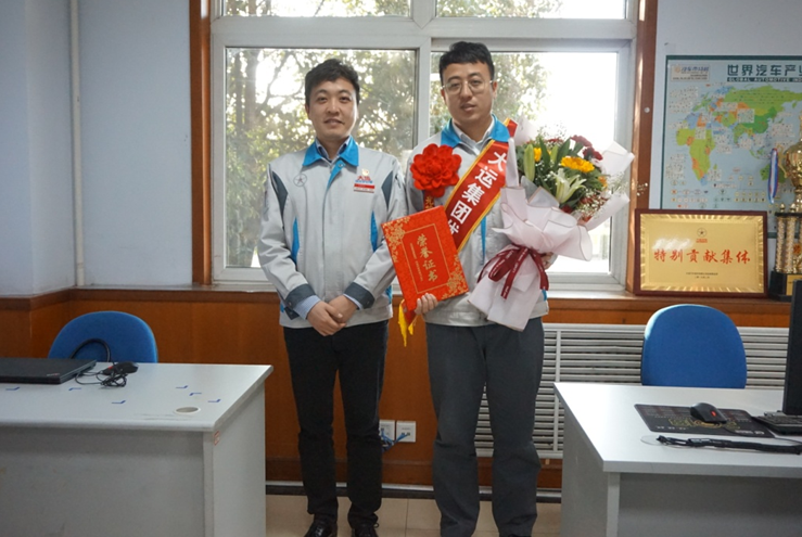 姜宇翔总经理在新能源商用车研发部办公室为获奖人员颁奖