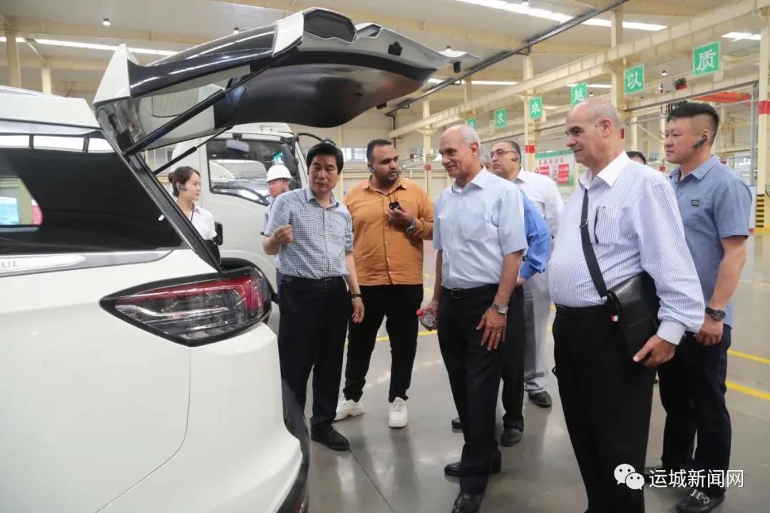 远勤山向外国友人介绍大运纯电动MPV产品性能(资料图)