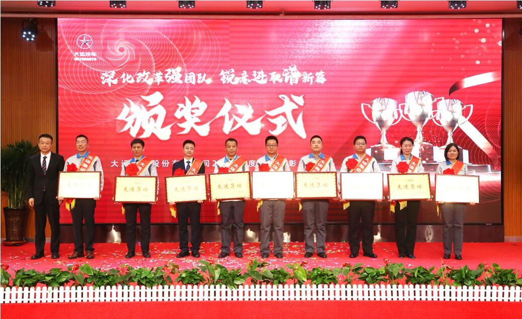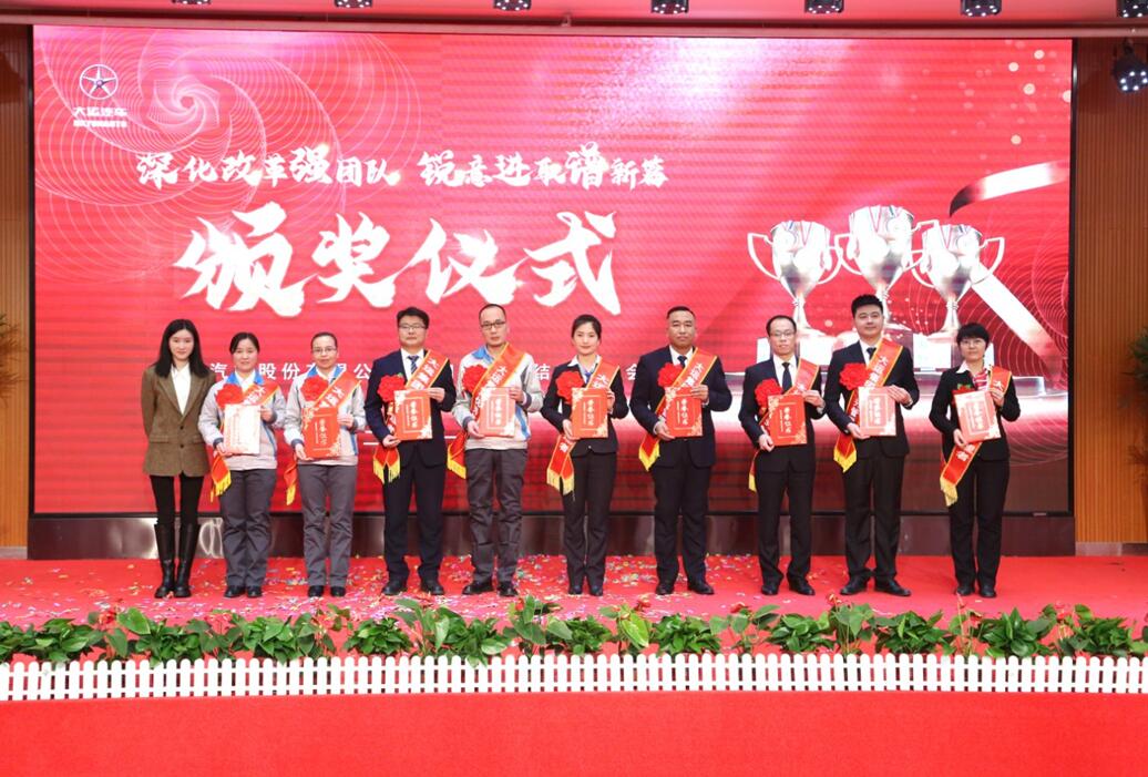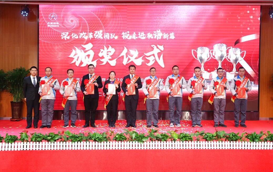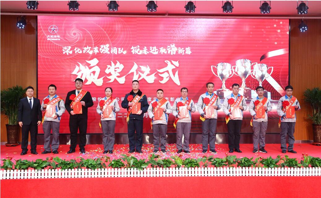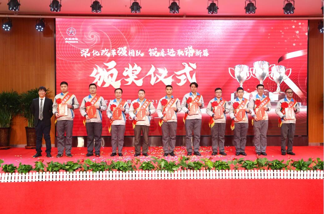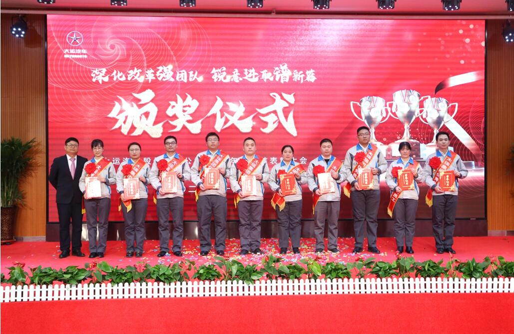 汇聚榜样力量,礼赞忠诚担当,伴着激扬鼓舞的音符,当公司历年来受表彰的先进个人名单缓缓出现在大屏幕上,台下不时响起热烈的掌声,榜样的传承,赋予大运不断开拓、进取的力量。下午6:30,一段欢快喜庆的舞蹈——《开门红》拉开了表彰会的序幕,主持人盛装登场,宣布大运汽车股份有限公司2021年度表彰大会正式开始。