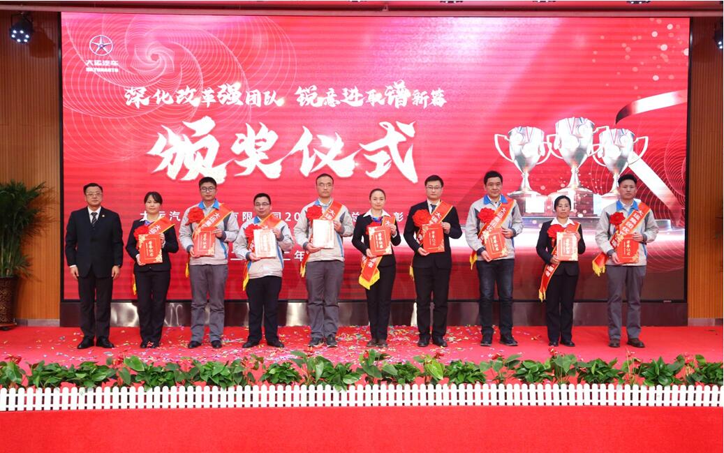 英雄虎胆气,金虎踏歌来。1月27日晚,大运汽车股份有限公司2021年度表彰大会在办公大楼12楼多功能厅隆重举行,本次大会的主题为“深化改革强团队,锐意进取谱新篇”,大运集团董事长远勤山、重卡事业部总经理姜宇翔、公司各中心副总经理以及优秀个人、先进集体代表,员工代表共计300余人参加了此次大会。